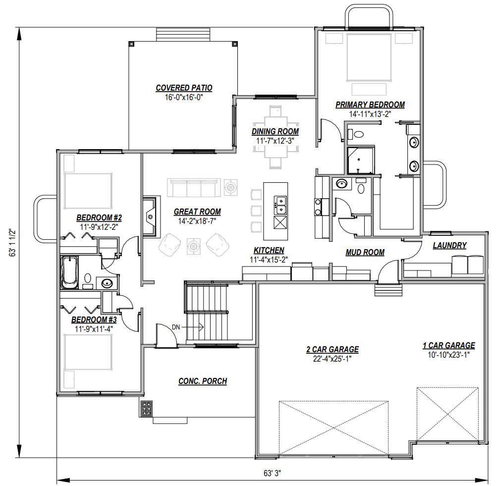 3,258 Total Sq Ft / 1,875 Main Floor Sq Ft 1,383 Basement Sq Ft / 843 Garage Sq Ft / 5 Bed / 3.5 Bath